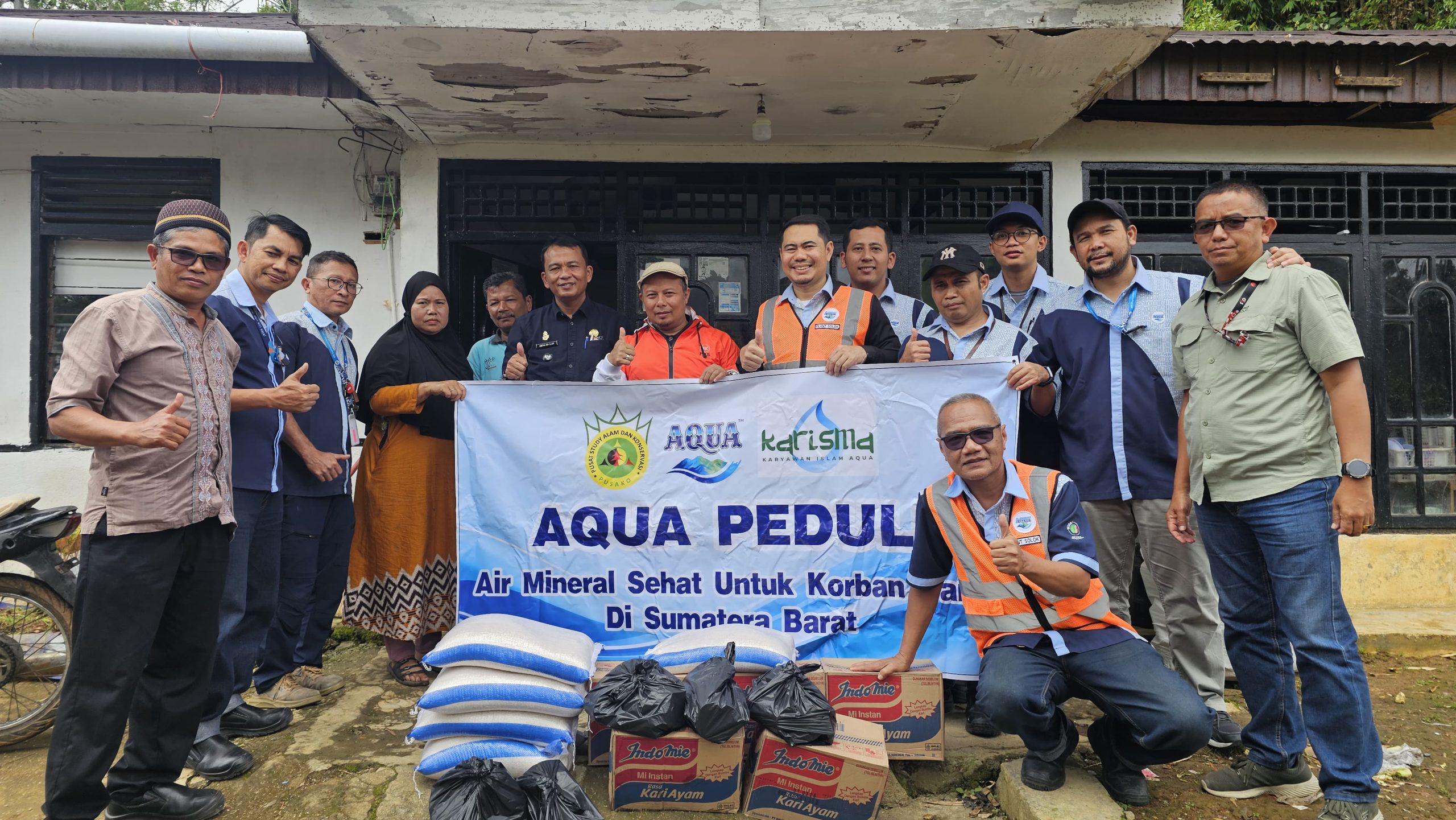 Tim AQUA mendistribusikan ribuan liter air minum kemasan ke sejumlah titik pengungsian dan permukiman warga. Perusahaan berkoordinasi langsung dengan pemerintah daerah, relawan, dan aparat setempat agar bantuan tepat sasaran. Warga menerima bantuan tersebut untuk memenuhi kebutuhan minum dan memasak selama masa darurat.