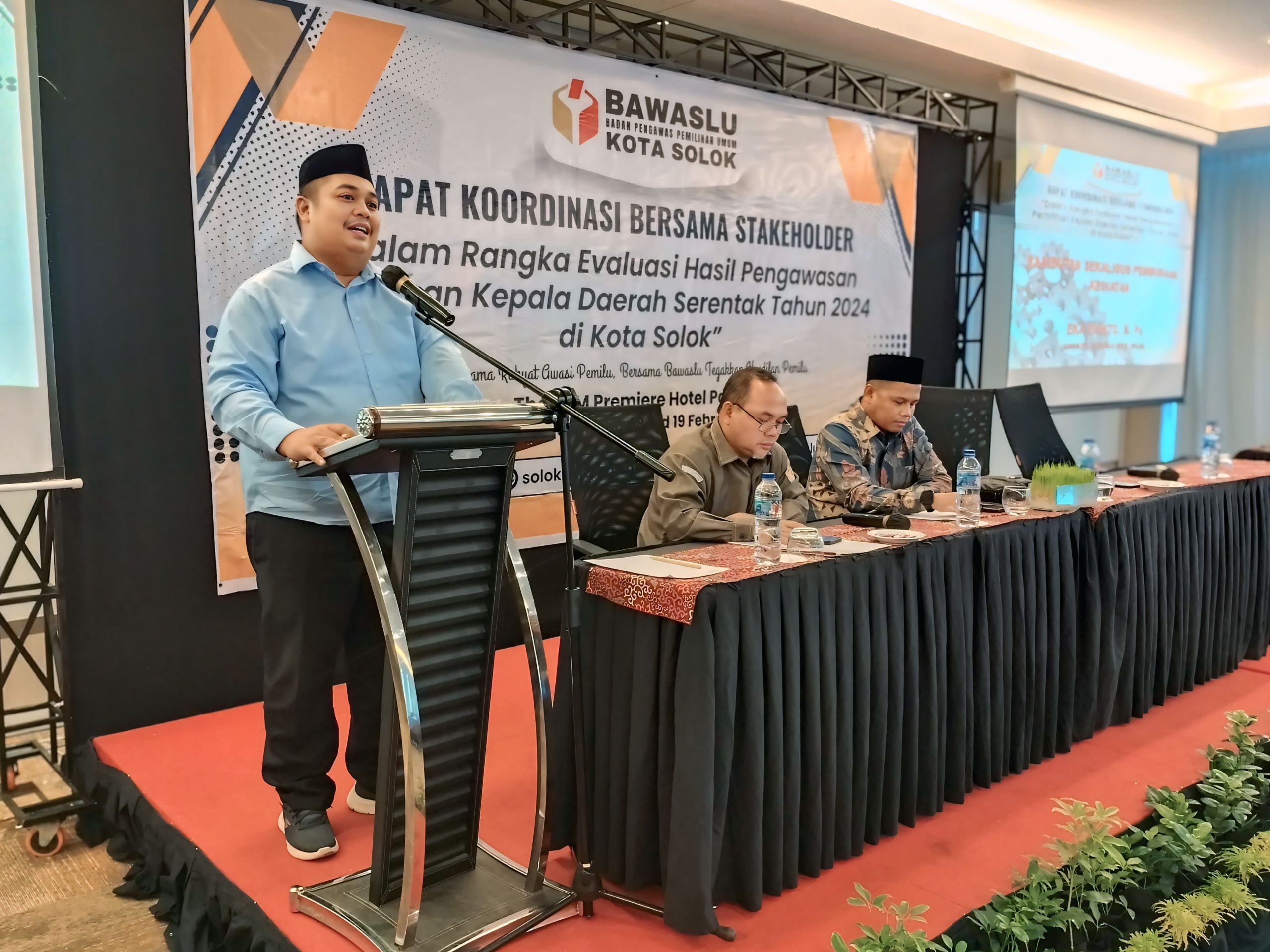 Ketua Bawaslu Kota Solok dalam sambutannya menekankan pentingnya kolaborasi antar lembaga dalam menciptakan pemilu yang bersih, jujur, dan adil.