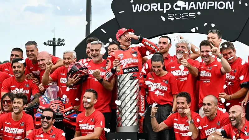 Marc Marquez, setelah melewati balapan penuh tekanan, akhirnya memastikan gelar juara dunia MotoGP 2025.